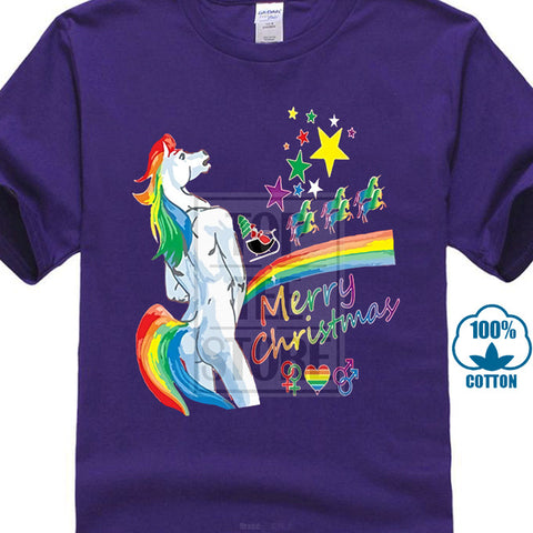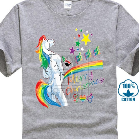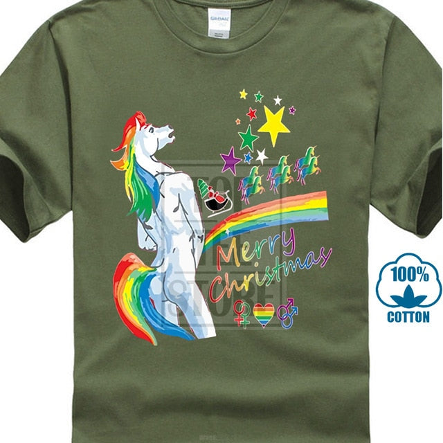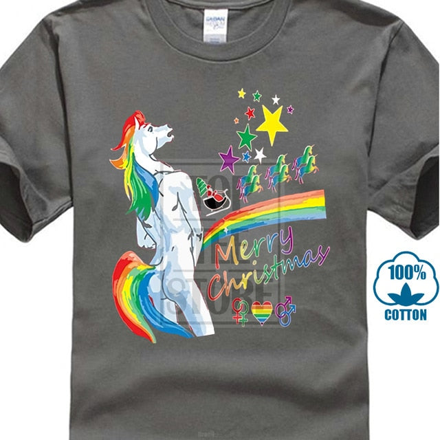 2017 Customized Loose Black Men Tshirts Homme Tees Men's T Shirt Unicorn Rainbow Gay Pride Ugly Christmas